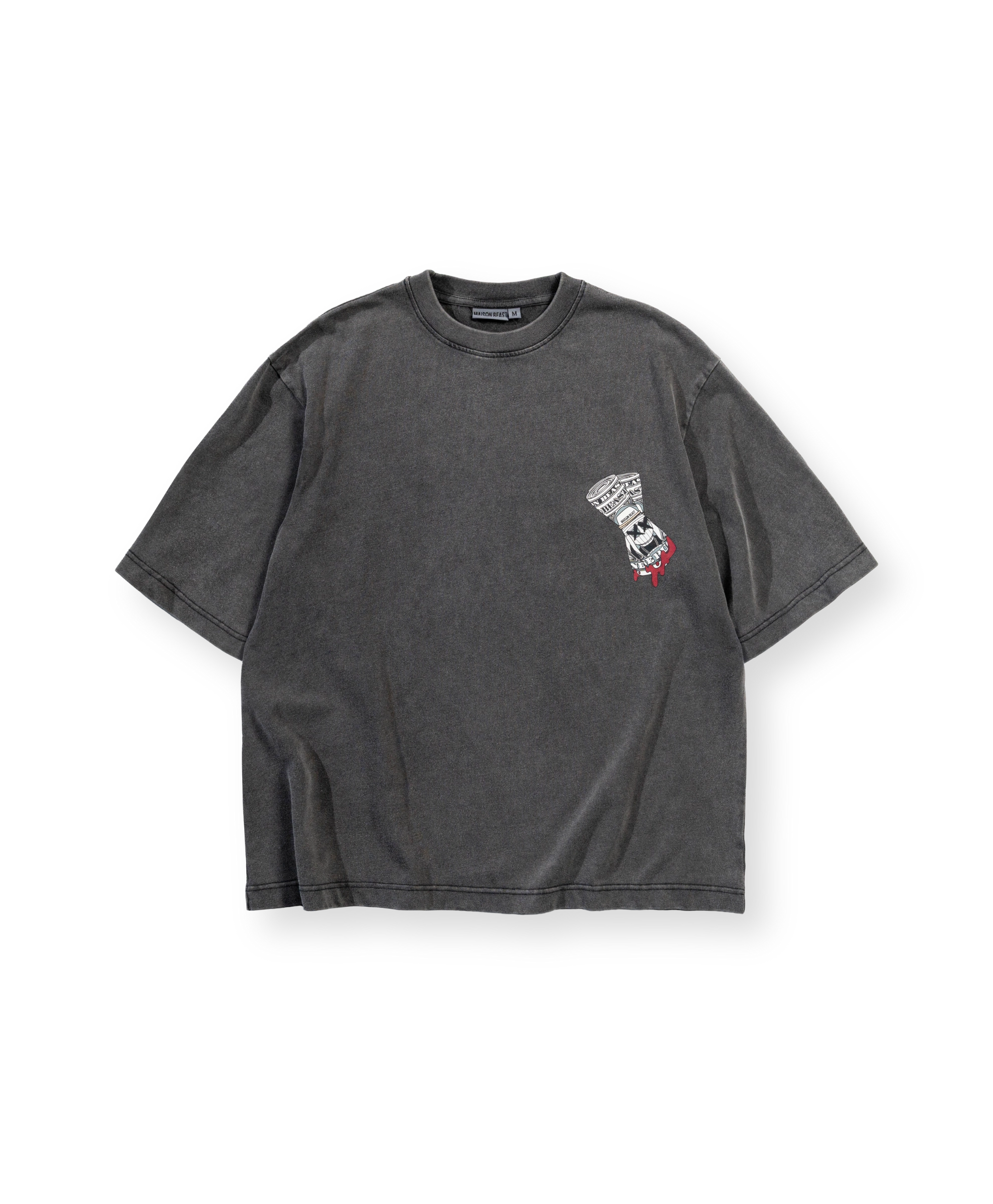 Front print: blood-dripping rolled cash graphic on the chest